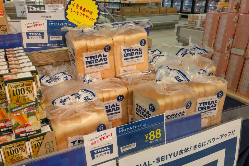 - トライアルブレッド(6枚・8枚):88円(税込95.04円)。近隣スーパーと比較しても非常に価格競争力があります。毎日の消費量が多いパンの価格が安定するのは、消費者にとって大きなメリットです。