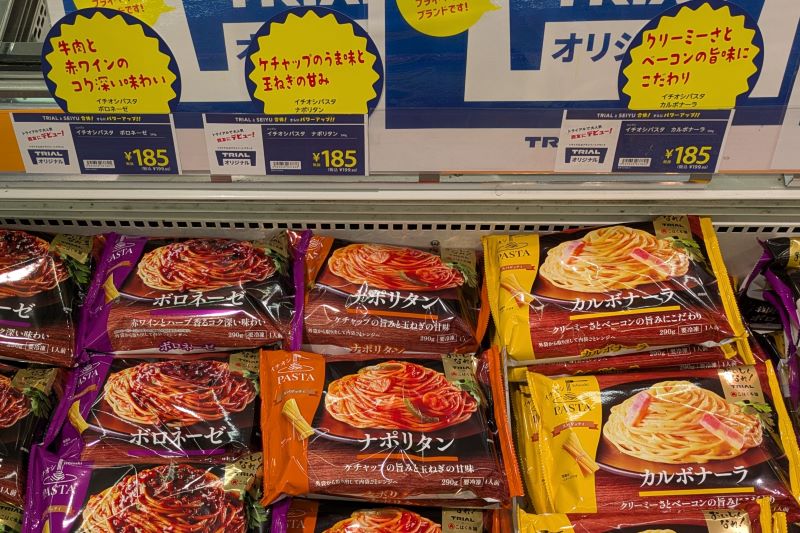 - イチオシパスタ(ボロネーゼ・ナポリタン・カルボナーラ):185円(税込199.80円)。低価格帯のパスタは、一人暮らしの方や、手早く食事を済ませたい日の強い味方です。