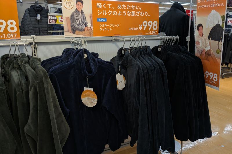 - シルキーフリースジャケット:998円(税込1,097.80円)。これからの季節に活躍する防寒着がこの価格。